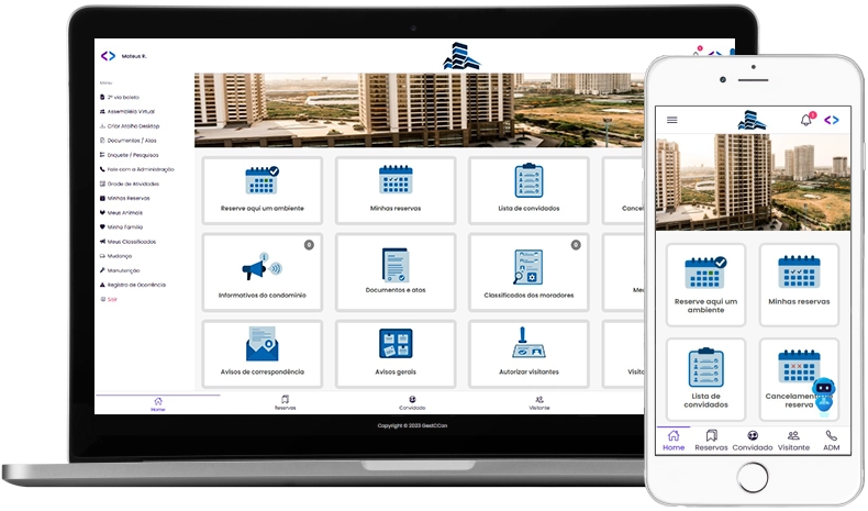 O GestCCon oferece um painel administrativo poderoso para os funcionários e um portal intuitivo para os moradores, que pode ser acessado via web, como aplicativo desktop ou diretamente do seu smartphone, garantindo mobilidade e conveniência.
